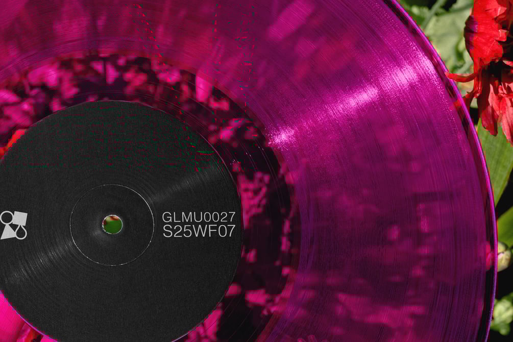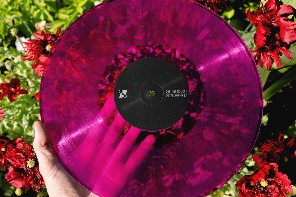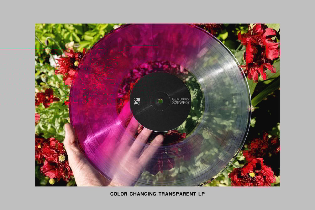 Crisp, clear vinyl reveals the garden beneath. Dark red poppies bloom through the transparent groove, adding depth and drama.
