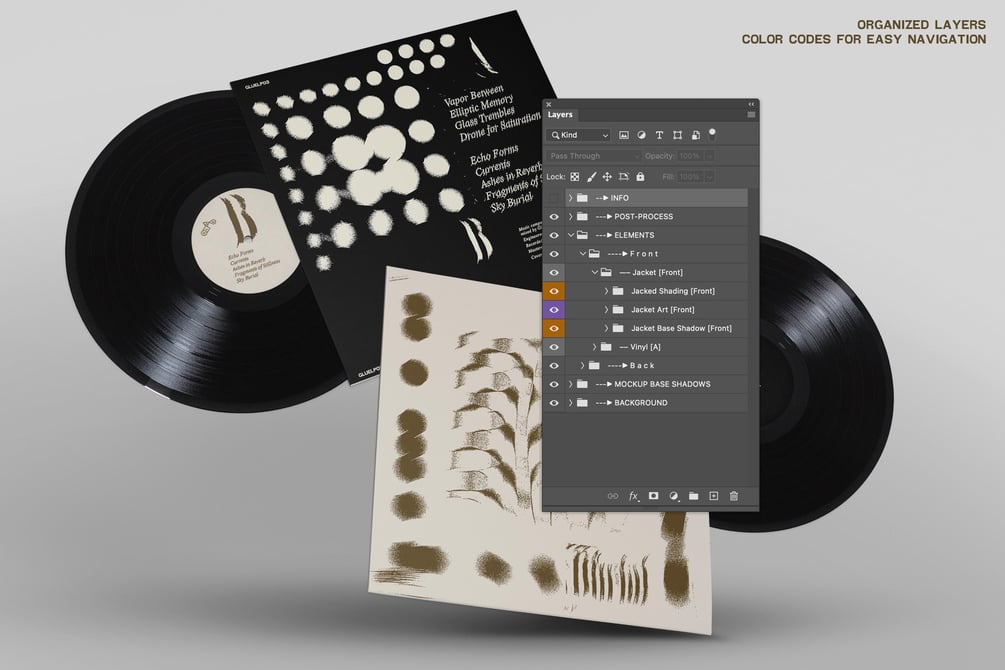 The pack includes two mockup compositions from two different approaches. Perfect mockup to showcase your vinyl cover art and package concepts.